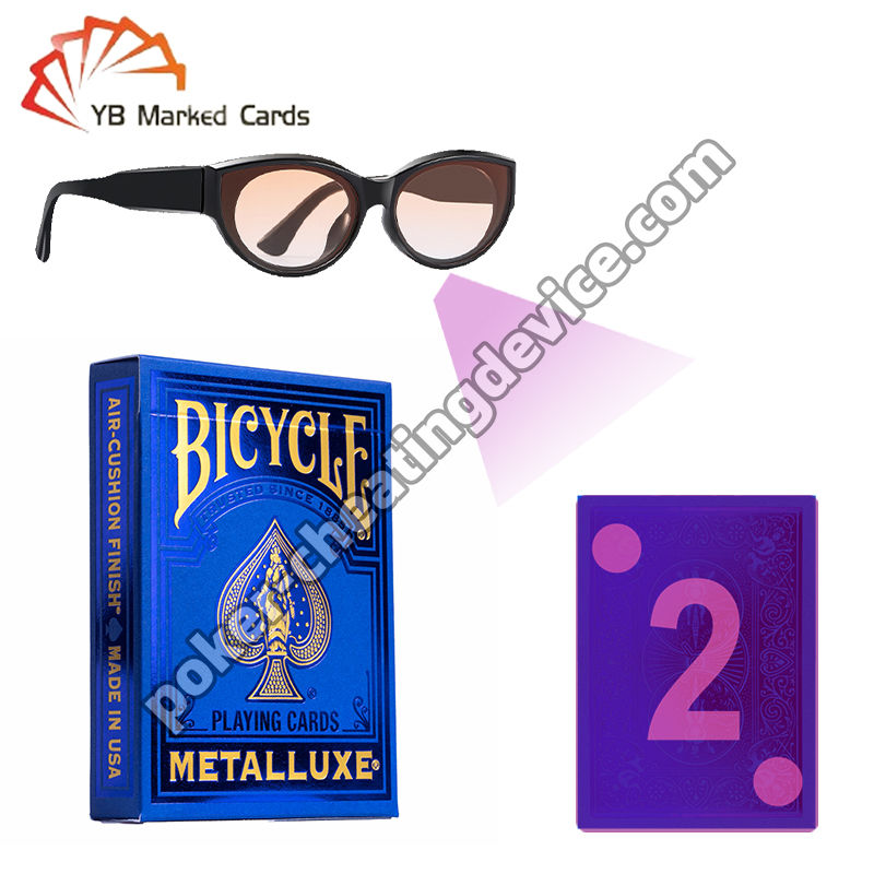 Представляем карты Bicycle Metalluxe Blue 2023 с невидимыми чернилами—самый продвинутый инструмент для обмана для игроков в живой покер. Эти карты с метками используют технологию инфракрасных (ИК) чернил, делая метки полностью невидимыми невооруженным глазом. Только игроки, носящие специальные покерные очки или инфракрасные контактные линзы, могут видеть скрытые коды, что дает вам несправедливое преимущество в каждой раздаче.